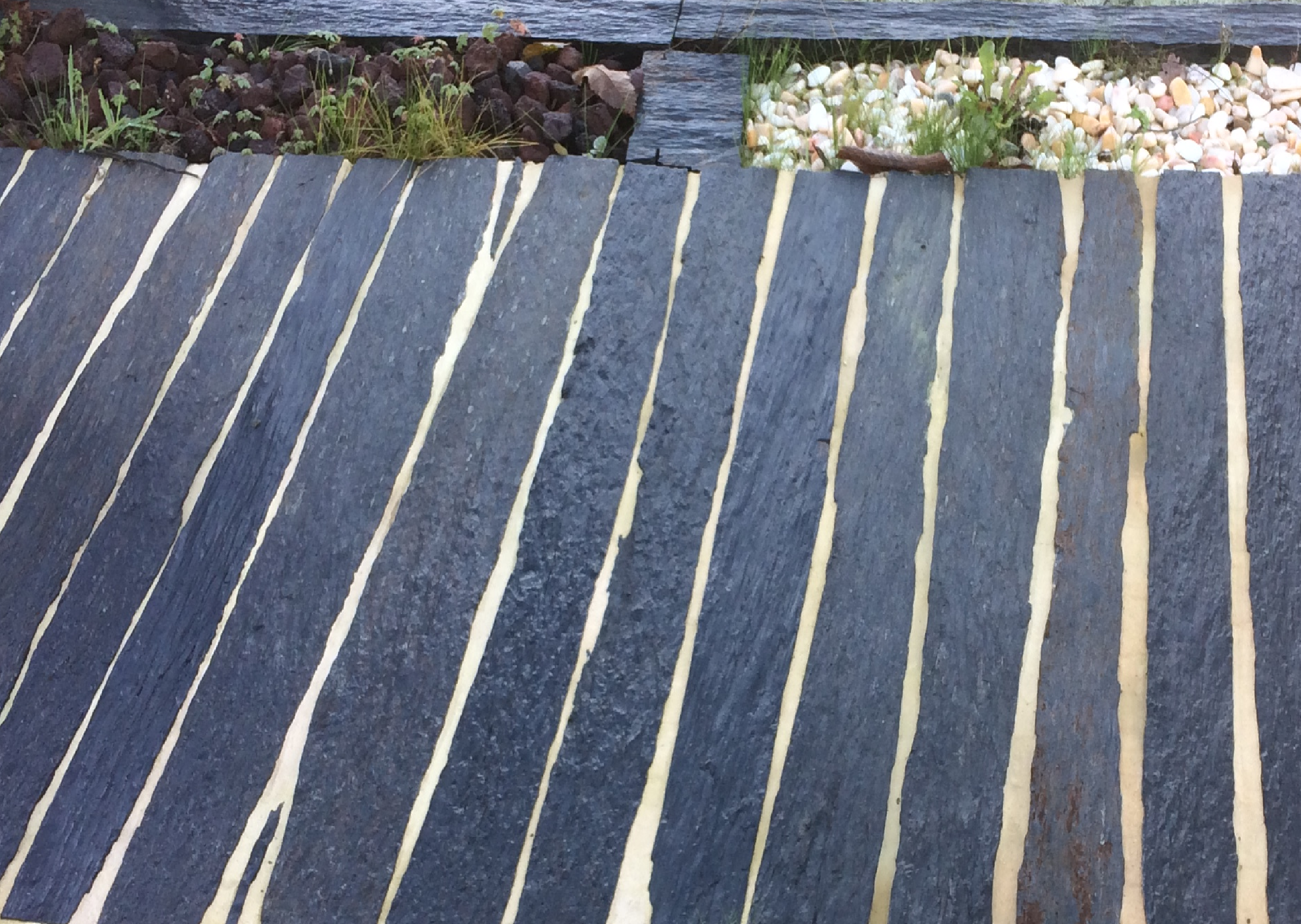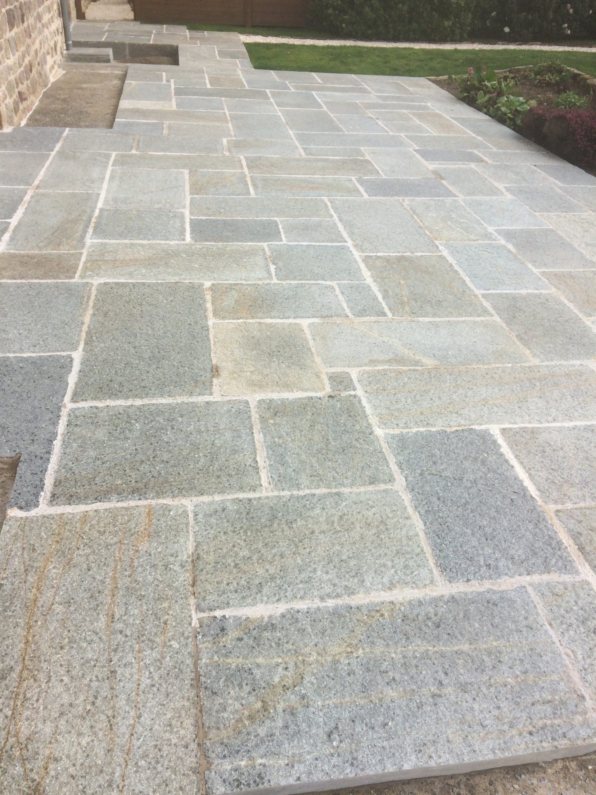 Dalles : pose de tous types de dalles (ardoise, granite, quartziste, gneiss) pour créer des terrasses, des allées et des cours.